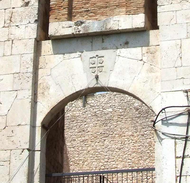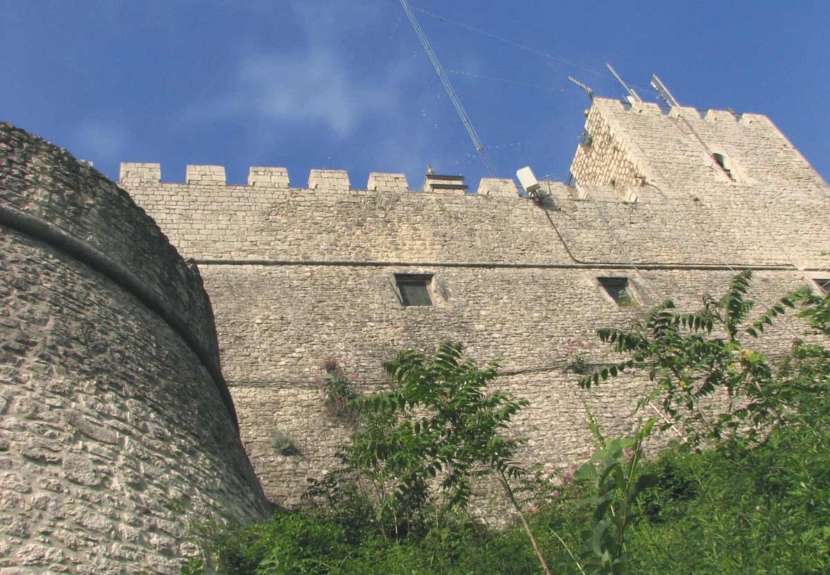 monte, si erge a scarpata con dei torrioni circolari posti agli spigoli