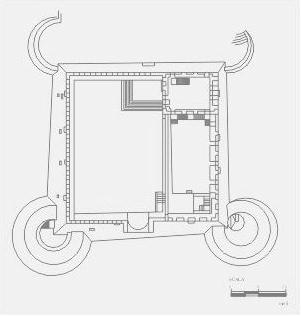 in piani e le tracce delle scale, è poi presente una sala coperta