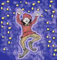 di qua e di là e girando su se stesso. Il folletto non si trastullava