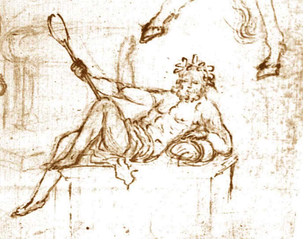 come nelle antiche raffigurazioni, da un vecchio disteso che tiene in