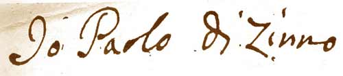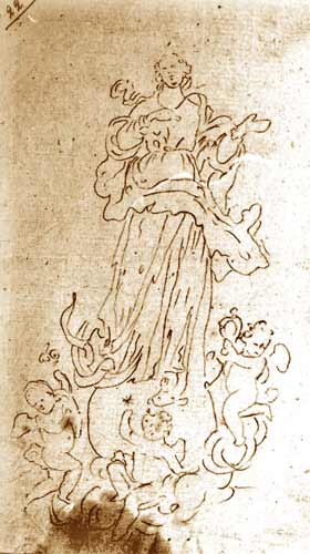 In alto: Studio della statua dell'Immacolata In basso: Firma dell'artista dal Libro delle entrate della Confraternita SS.Sacramento di S.Leonardo 1711-1818 |