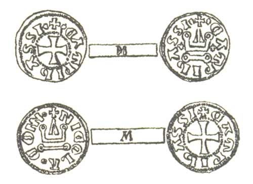di Luigi IX), sul rovescio una croce con la parola “Campibassi”.